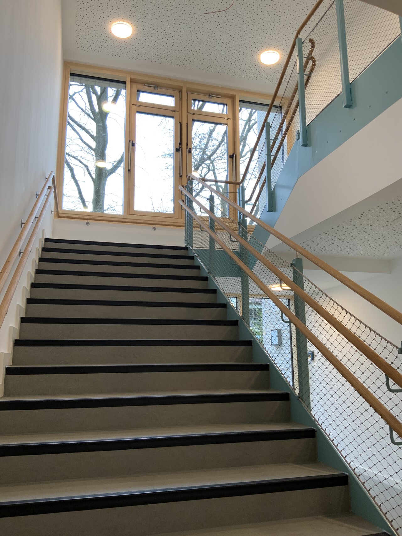 Neubau eines dreigeschossigen Erweiterungsbaus mit Mensa, Klassenräumen, Lehrerzimmern und Kommunikationsbereichen. Der Neubau befindet sich auf dem…