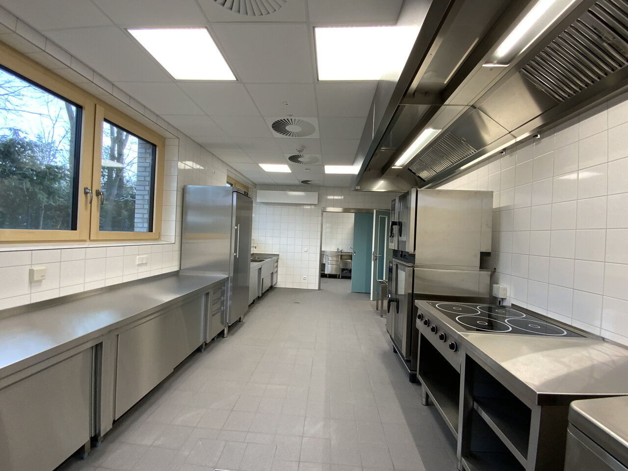 Eingeschossiger Neubau einer Mensa bestehend aus dem Speisesaal und Küchenräumen.